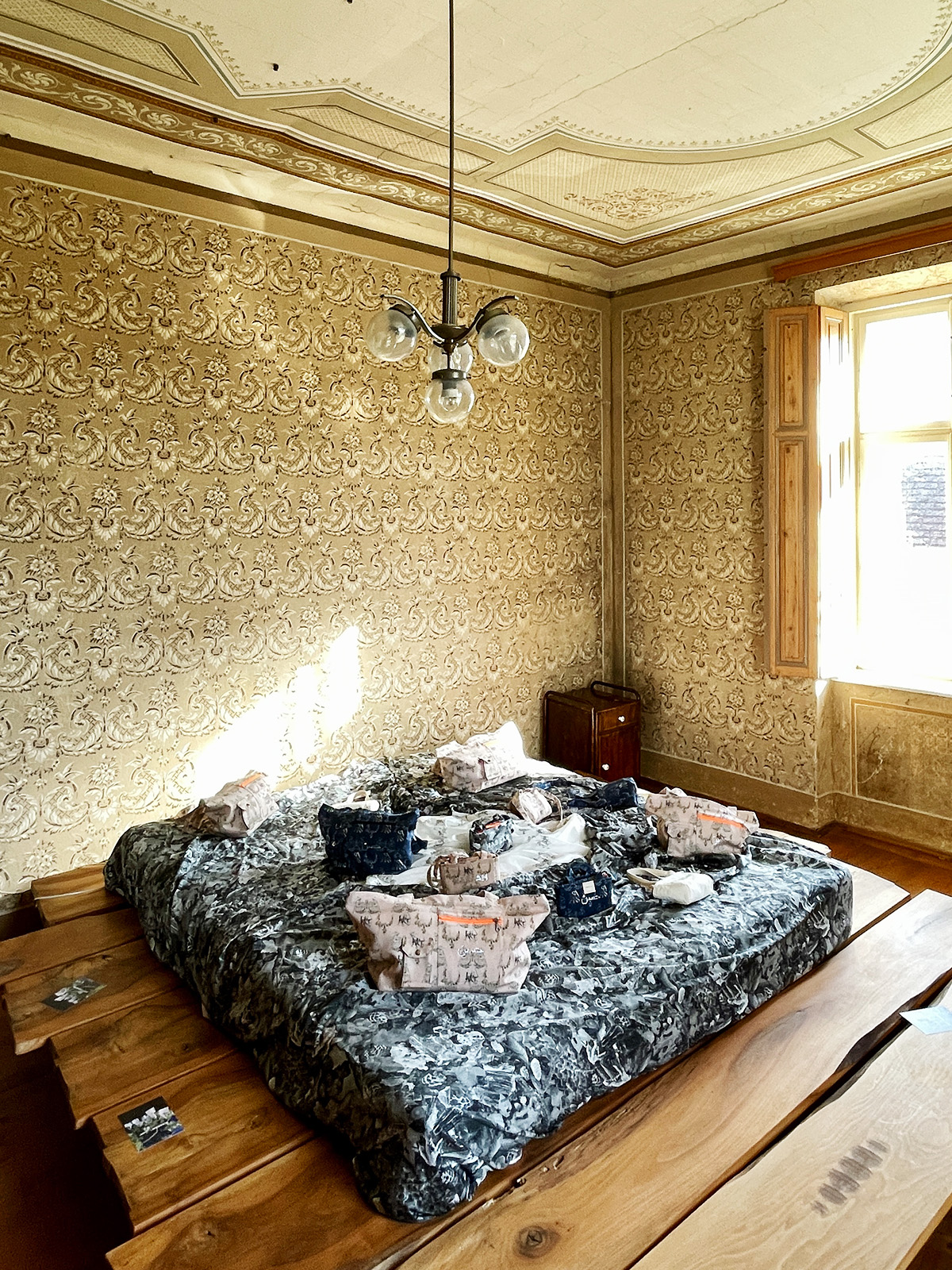 Ausgehend von Motiven aus dem Haus und der umgebenden Landschaft entwickelte Studio Hassan textile Muster, die auf Stoff gedruckt wurden. Aus diesen Textilien entstanden handgefertigte Taschen, die ortsspezifische Elemente aufgreifen. Ergänzend lud ein narrativer Waldspaziergang dazu ein, die Umgebung als Ausgangspunkt der Motive zu erkunden.