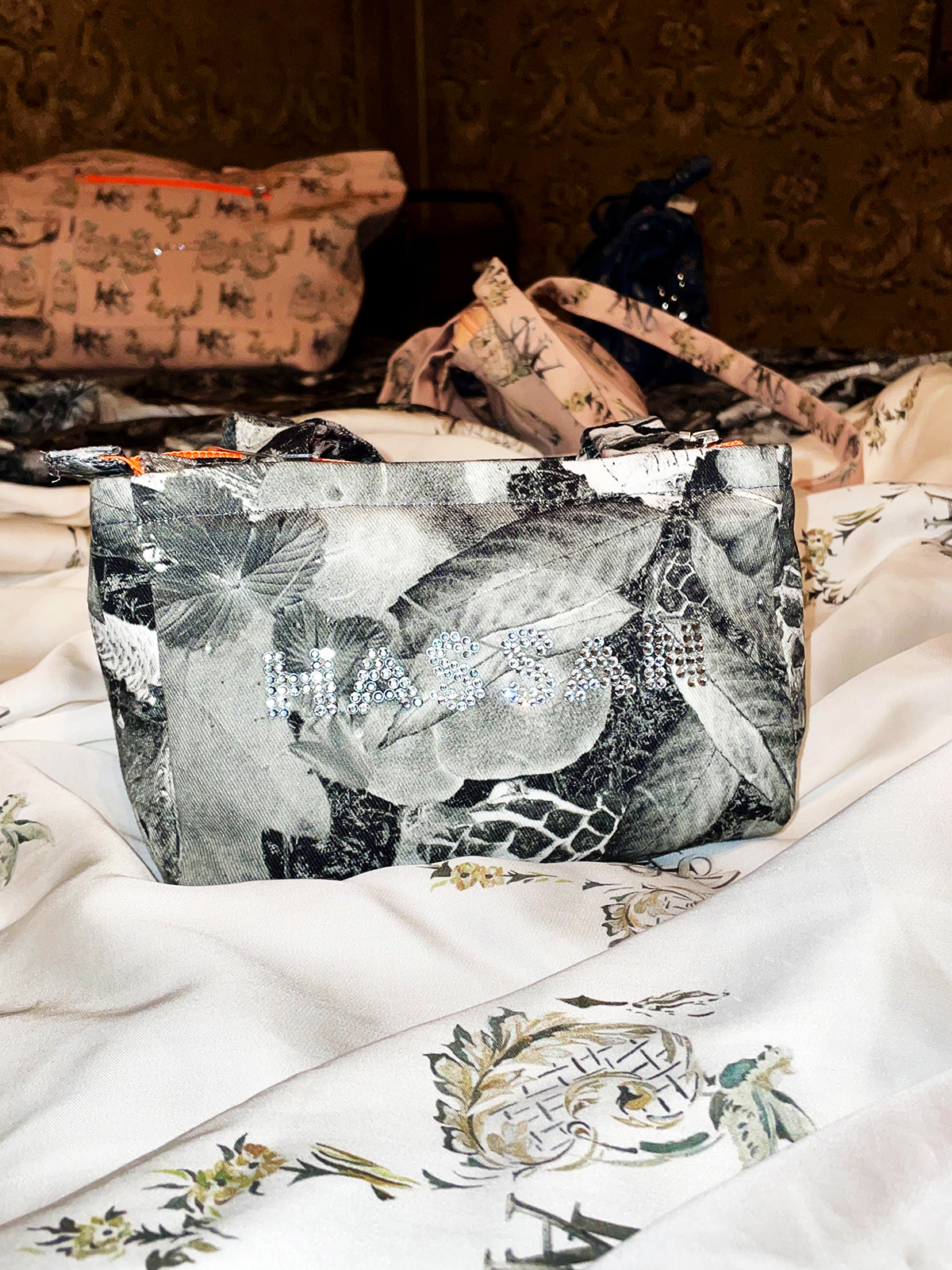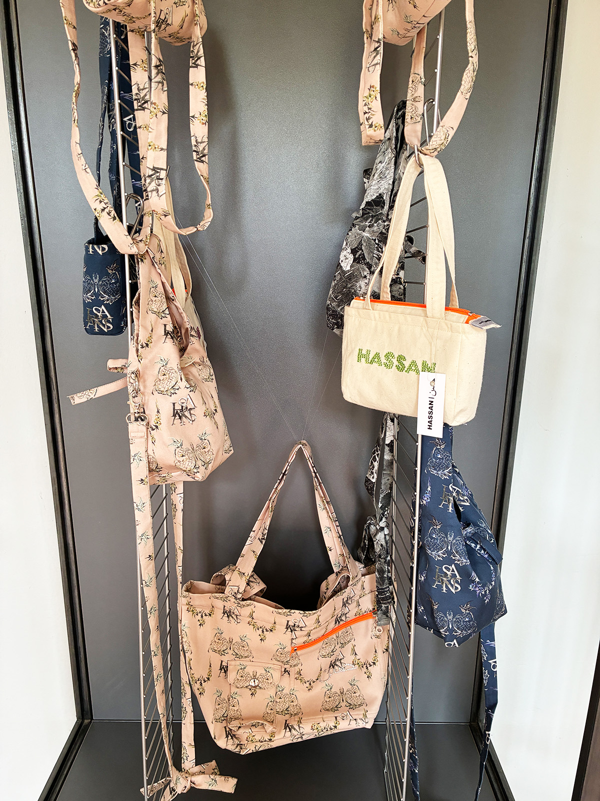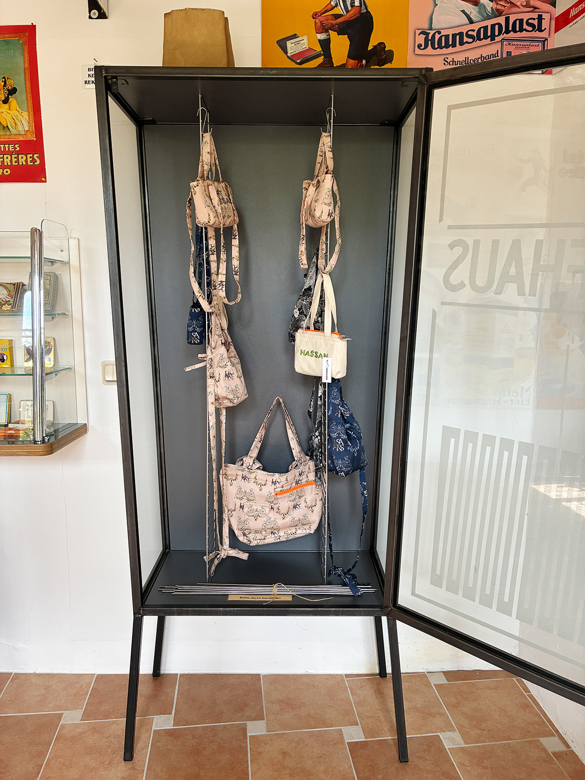 Museumsshop: Taschen von Studio Hassan aus Stoffen, die vom Palais Wild und dem Wald der Wild inspiriert sind.
