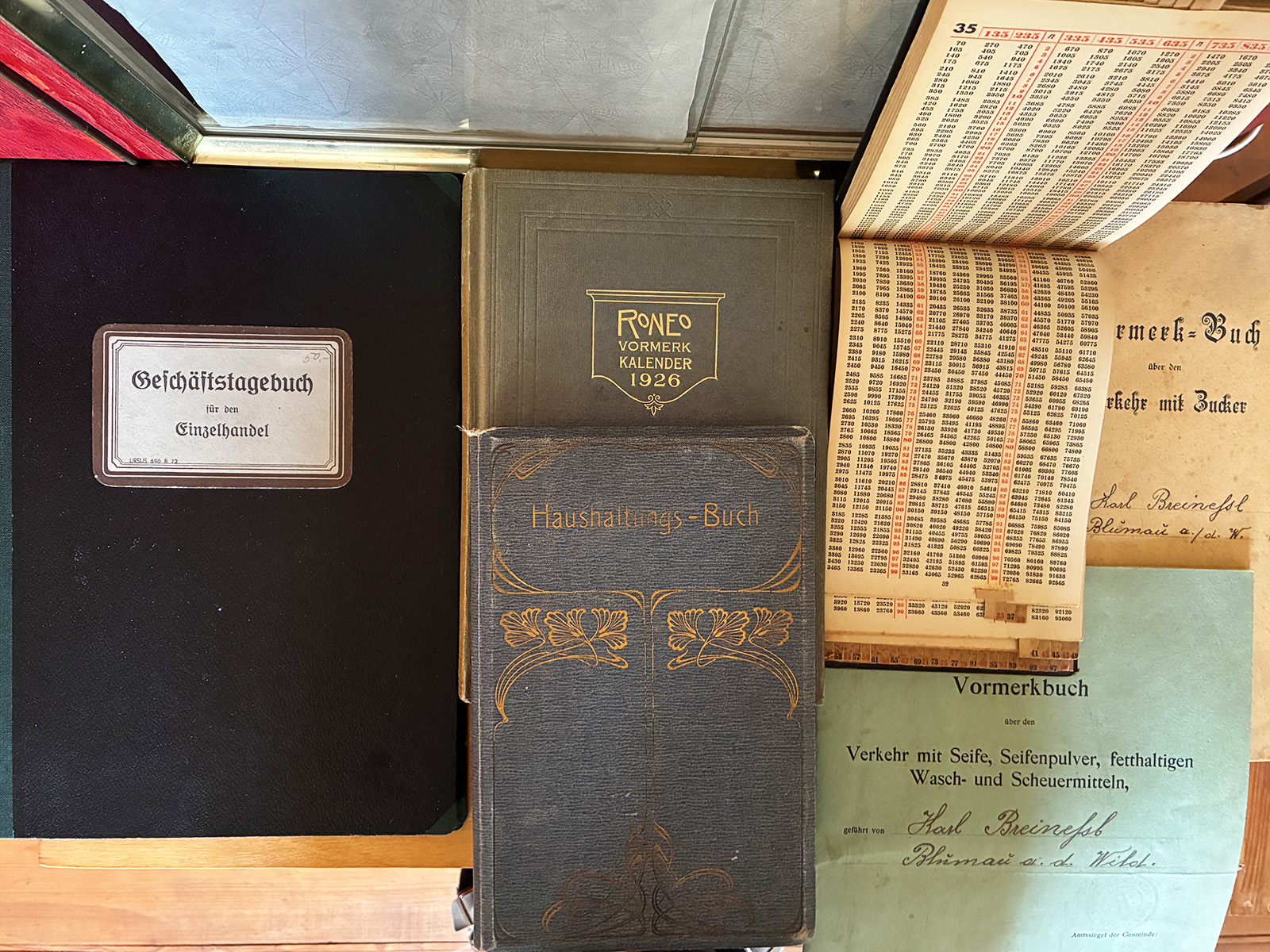 Administration: Dokumentation von Geschäftsvorgängen gegenüber dem jeweiligen Staat, Geschäftspartnern und zur eigenen Gedächtnisstütze sind ein wesentlicher Arbeitsbereich jeder Geschäftsperson. Berechnungen, Geld- und Schriftverkehr, Buchhaltung, Mangelverwaltung in analogen Zeiten (1910 bis 1970).